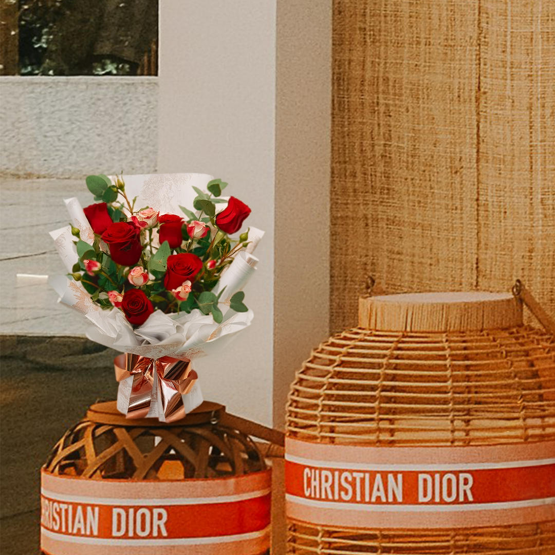 Featuring 6 imported red roses, paired with spray roses and eucalyptus, this bouquet offers a refined harmony of romance and restraint.